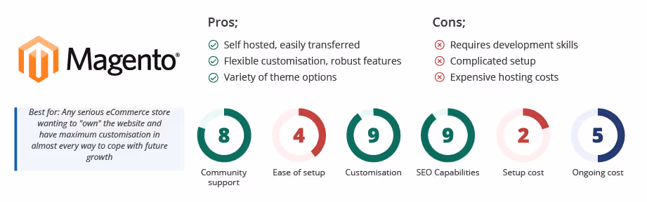 Magento requires developer involvement, dedicated hosting, and a higher initial build cost, but offers the most robust long-term customisation.